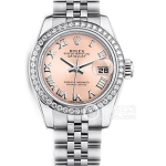 Basic Information: ID 179174, Silver, Brand: Rolex, Series: Women’s Datejust, Movement Type: Automatic, Gender: Women’s, Movement Model: Cal. 2235, Movement Type: Automatic, Manufacturer: Rolex, Movement Diameter: 20mm, Movement Thickness: 5.95mm, Frequency: 28,800 vibrations per hour, Hairspring: Parachrom, Shock Absorber: Paraflex Jewel count: 31; Power reserve: 48 hours; Technical certification: Superlative Chronometer certification; Appearance: Case diameter: 26mm; Case thickness: Not available; Dial color: Silver; Dial shape: Round; Strap color: Silver; Clasp type: Folding clasp, concealed crown buckle; Case back: Not available; Weight: Not available; Water resistance: 100 meters; Hour marker type: Not available; Clasp spacing: Not available; Lug spacing: Not available; Materials: Case material: Stainless steel/18k white gold, fluted; Dial material: Diamond-set; Bezel material: Not available; Crystal material: Scratch-resistant sapphire crystal, anti-reflective; Cyclops lens (2.5x) for date window; Crown material: Not available; Strap material: Stainless steel, Oyster, three-link clasp; Clasp material: Not available; Functions: Date display