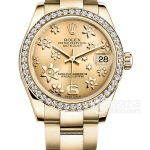 Basic Information Number: m178313-0036; Brand: Rolex; Series: Women’s Datejust; Movement Type: Automatic; Gender: Women’s; Movement Model: Cal. 2235; Movement Type: Automatic; Manufacturer: Rolex; Movement Diameter: 20 mm; Movement Thickness: 5.95 mm; Frequency: 28,800 vibrations per hour; Hairspring: Parachrom; Shock Absorber: Paraflex Jewel count: 31; Power reserve: 48 hours; Technical certification: Superlative Chronometer certification; Appearance: Case diameter: 31 mm; Case thickness: 7 mm; Dial color: Black; Dial shape: Round; Strap color: Two-tone; Clasp type: Oyster folding clasp with 5 mm Easylink extension system; Case back: Solid; Weight: Not available; Water resistance: 100 meters; Hour markers: Bat markers; Luminous; Clasp spacing: Not available; Lug spacing: Not available; Materials: Case material: Stainless steel; Dial material: Not available; Bezel material: 18k gold, with triangular knurled diamond setting; Crystal material: Sapphire crystal; Crown material: 18k gold, screw-down Twinlock double water resistance system; Strap material: 18k gold and stainless steel; Clasp material: 18k gold and stainless steel; Functions: Date display