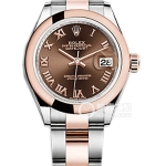 Basic Information Number: m279161-0014; Brand: Rolex; Series: Women’s Datejust; Movement Type: Automatic Mechanical; Gender: Women’s; Movement Model: 2236 Movement Type: Automatic Mechanical; Manufacturer: Rolex; Power Reserve: 55 Hours; Technical Certification: Superlative Chronometer Certification; Appearance: Case Diameter: 28mm; Case Thickness: Not Available; Dial Color: White; Dial Shape: Round; Strap Color: Two-tone; Clasp Type: Oyster Clasp with 5mm Easylink Extension System; Case Back: Screw-down Case Back; Weight: Not Available; Water Resistance: 100 meters; Hour Markers: Diamond-set; Clasp Spacing: Not Available; Lug Spacing: Not Available; Materials: Case Material: Stainless Steel; Dial Material: Mother-of-Pearl with Diamonds; Bezel Material: 18k Rose Gold; Domed Bezel; Crystal Material: Scratch-resistant Sapphire Crystal with Anti-reflective Cyclops Window; Crown Material: 18k Rose Gold; Winding Crown; Screw-down Twin Lock Double Water Resistance System; Strap Material: Everose Steel (combination of 904L stainless steel and 18ct Everose gold), Oyster, Three-link Clasp Material: Stainless Steel; Functions: Date Display, Large Date
