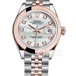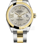 Basic Information Number: m279163-0003 Brand: Rolex Series: Ladies’ Datejust Movement Type: Automatic Mechanical Gender: Ladies’ Movement: Movement Model: 2236 Movement Type: Automatic Mechanical Manufacturer: Rolex Power Reserve: 55 hours Technical Certification: Superlative Chronometer Certification Appearance: Case Diameter: 28 mm Case Thickness: Not Available Dial Color: Silver Dial Shape: Round Strap Color: Two-tone Clasp Type: Concealed Folding Crown Buckle Case Back: Screw-down Case Back Weight: Not Available Water Resistance: 100 meters Hour Markers Type: Diamond Hour Markers Clasp Spacing: Not Available Lug Spacing: Not Available Materials: Case Material: Stainless Steel Dial Material: Not Available Bezel Material: 18k Gold; Domed Bezel Crystal Material: Scratch-resistant Sapphire Crystal Glass, Anti-reflective Cyclops Window for Magnifying Date Crown Material: 18k Gold, Winding Crown; Screw-down Twin Lock Double Water Resistance System Strap Material: Stainless Steel/18k Gold; Jubilee, Five-link Clasp Material: Stainless Steel Functions: Date Display, Large Date