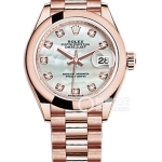 Basic Information Number m279165-0014 Brown Roman numerals Brand Rolex Series Lady-Datejust Movement Type Automatic Mechanical Gender Ladies Movement Model 2236 Movement Type Automatic Mechanical Manufacturer Rolex Power Reserve 55 hours Technical Certification Super Chronometer Certification Appearance Case Diameter: 28 mm Case Thickness: Not available Dial Color: Chocolate Dial Shape: Round Strap Color: Gold Clasp Type: Concealed Folding Crown Buckle Case Back: Solid Case Back Weight: Not available Water Resistance: 100 meters Hour Marker Type: Roman numerals Clasp Spacing: Not available Lug Spacing: Not available Materials Case Material 18k Rose Gold Dial Material Not available Bezel Material 18k Rose Gold Crystal Material Sapphire Crystal Glass Crown Material 18k Rose Gold Strap Material 18k Rose Gold, Jubilee, Five-Link Clasp Material 18k Rose Gold Functions Date Display