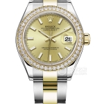 Basic Information Number: m279383rbr-0004 Brand: Rolex Series: Ladies’ Datejust Movement Type: Automatic Mechanical Gender: Ladies’ Movement: Movement Model: 2236 Movement Type: Automatic Mechanical Manufacturer: Rolex Power Reserve: 55 hours Technical Certification: Superlative Chronometer Appearance: Case Diameter: 28 mm Case Thickness: Not Available Dial Color: Silver Dial Shape: Round Strap Color: Two-tone Clasp Type: Concealed Folding Crown Buckle Case Back: Screw-down Case Back Weight: Not Available Water Resistance: 100 meters Hour Marker Type: Diamond-set Hour Markers Clasp Spacing: Not Available Lug Spacing: Not Available Materials: Case Material: Stainless Steel Dial Material: Not Available Bezel Material: 18k Gold with Diamonds Crystal Material: Scratch-resistant Sapphire Crystal Glass, Anti-reflective Cyclops Window for Magnified Date Crown Material: 18k Gold, Winding Crown; Screw-down Twin Lock Double Water Resistance System Strap Material: Stainless Steel/18k Gold; Two-tone, Jubilee, Five-link Clasp Material: Stainless Steel/18k Gold Functions: Date Display, Large Date