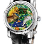 Basic Information ID: 729-61 Brand: Ulysse Nardin Series: Gilded Gender: Men’s Movement: Movement Model: UN-72 Manufacturer: Ulysse Nardin Appearance: Case Diameter: 42mm Case Thickness: Not Available Dial Color: Patterned Dial Shape: Round Strap Color: Black Clasp Type: Folding Clasp Case Back: Transparent Weight: Not Available Water Resistance: 30 meters Hour Marker Type: None Hour Marker Spacing: Not Available Lug Spacing: Not Available Materials: Case Material: 950 Platinum Dial Material: Enamel Bezel Material: 950 Platinum Crystal Material: Sapphire Crystal Crown Material: Not Available Strap Material: Alligator Leather Clasp Material: 950 Platinum Functions: Minute Repeater