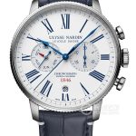 Basic Information Number 1533-320LE-0A-175/1B Brand: Ulysse Nardin Series: Marine Movement Type: Automatic Mechanical Gender: Men’s Limited Edition: 300 Movement Model: UN-153 Movement Type: Automatic Mechanical Manufacturer: Ulysse Nardin Appearance Case Diameter: 44 mm Case Thickness: 13.66 mm Dial Color: White Dial Shape: Round Strap Color: Blue Clasp Type: Folding Clasp Case Back: Transparent Weight: Not Available Water Resistance: 50 meters Hour Markers: Roman Numerals Clasp Spacing: Not Available Lug Spacing: Not Available Materials Case Material: Stainless Steel Dial Material: White lacquered dial with silvered sub-dials; “Chronometry sinc” inscription; blued steel and red hands Bezel Material: Stainless Steel, coin-edge bezel Crystal Material: Sapphire Crystal Crown Material: Stainless Steel Strap Material: Alligator Leather (Optional R-STRAP Fabric Strap) Clasp Material: Stainless Steel Functions: Date Display, Annual Calendar, Chronograph