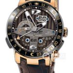 Basic Information ID 322-00 Brand: Ulysse Nardin Perpetual Calendar Movement Type: Automatic Mechanical Gender: Men’s Limited Edition: 500 Movement Type: Automatic Mechanical Case Diameter: 43mm Case Thickness: Not Available Dial Color: Black Dial Shape: Round Strap Color: Dark Brown Clasp Type: Folding Clasp Case Back: Transparent Weight: Not Available Water Resistance: 100 meters Hour Marker Type: Bat Hour Markers Arabic Numerals Clasp Spacing: Not Available Lug Spacing: Not Available Materials Case Material: 18k Rose Gold Dial Material: Not Available Bezel Material: 18k Rose Gold Crystal Material: Sapphire Crystal Glass Crown Material: Not Available Strap Material: Alligator Leather Clasp Material: 18k Rose Gold Functions: Date Display, Day Display, Annual Calendar, Large Date, Perpetual Calendar, Dual Time Zone