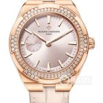Basic Information: Product Code: 2305V/000R-B077; Brand: Vacheron Constantin; Series: Overseas; Movement Type: Automatic; Gender: Ladies; Movement Model: 5300; Movement Type: Automatic; Manufacturer: Vacheron Constantin; Movement Diameter: 22.60 mm; Movement Thickness: 4 mm; Frequency: 28,800 rpm; Number of Jewels: 31; Number of Parts: 128; Power Reserve: 44 hours; Functions: Geneva Seal Technical Certification: Geneva Seal Certification Appearance: Case Diameter: 37mm Case Thickness: 10.8mm Dial Color: Pink Dial Shape: Round Strap Color: Pink Clasp Type: Folding Clasp Case Back: Transparent Weight: 117g Water Resistance: 150m Hour Marker Type: Bat Hour Markers Luminous Clasp Spacing: Not Available Lug Spacing: Not Available Materials: Case Material: 18K Pink Gold Dial Material: Rose pink smooth and sunburst satin brushed dial with velvety smooth minute markers; 18K gold hour markers, hour and minute hands with white luminous coating Bezel Material: 18K Pink Gold, set with 84 round-cut diamonds, approximately 1 carat Crystal Material: Sapphire Crystal Crown Material: 18K Pink Gold Strap Material: Mississippi Alligator Leather (also available with beige calfskin and beige rubber straps) Clasp Material: 18K Pink Gold Function: Antimagnetic