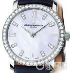 Basic Information Number: 25562/000G-9170 Brand: Vacheron Constantin Series: Heritage Movement Type: Quartz Gender: Ladies Movement Model: Cal.1202 Movement Type: Quartz Manufacturer: Vacheron Constantin Movement Diameter: 13mm Movement Thickness: 2.1mm Frequency: 32,768 Hz Number of Jewels: 4 Number of Parts: 33 Case Diameter: 29mm Case Thickness: 6.3mm Dial Color: Silver-white Dial Shape: Round Strap Color: Black Clasp Type: Pin Buckle Case Back: Solid Weight: Not Available Water Resistance: 30 meters Hour Markers: Diamond-set Hour Markers, Roman Numerals Clasp Spacing: Not Available Lug Spacing: Not Available Materials: Case Material: 18k White Gold Dial Material: Mother-of-Pearl, 8 Hour Markers, Diamond-set Bezel Material: 18k White Gold, Diamond-set Crystal Material: Sapphire Crystal Crown Material: 18k White Gold Strap Material: Silk Strap Clasp Material: 18k White Gold Functions: This watch has no other special functions.