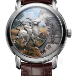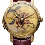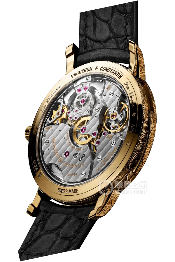 Basic Information: Number 6630C/000J–325C; Brand: Vacheron Constantin; Series: L’Artisan; Movement Type: Manual Mechanical; Gender: Men’s; Limited Edition: 1; Movement: Movement Model 1731; Movement Type: Manual Mechanical; Manufacturer: Vacheron Constantin; Movement Diameter: 32.8 mm; Movement Thickness: 3.9 mm; Frequency: 21,600 vibrations per hour; Number of Jewels: 36; Number of Parts: 265; Power Reserve: 65 hours; Functions: Geneva Seal; Technical Certification: Geneva Seal; Appearance: Case Diameter: 41 mm; Case Thickness: 8.59 mm; Dial Color: Patterned; Dial Shape: Round; Strap Color: Black; Clasp Type: Pin Buckle; Case Back: Transparent; Weight: Not Available; Water Resistance: Not Available; Hour Marker Type: None; Hour Marker Spacing: Not Available; Lug Spacing: Not Available; Materials: Case Material: 18K 3N Gold; Dial Material: 18K 2N Gold; Bezel Material: 18K Gold, Enamel; Crystal Material: Sapphire Crystal; Crown Material: 18K Gold 3N gold strap, alligator leather, 18k gold buckle, minute repeater.