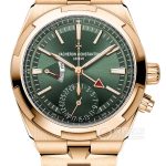 Basic Information: Model Number 7920V/210R-B965; Brand: Vacheron Constantin; Series: Overseas; Movement Type: Automatic; Gender: Men’s; Movement Model: 5110DT; Manufacturer: Vacheron Constantin; Movement Diameter: 30mm; Movement Thickness: 6mm; Frequency: 28,800 vibrations per hour; Number of Jewels: 37; Number of Parts: 234; Power Reserve: 60 hours; Functions: Day/Night indicator; Geneva Seal Technical Certification: Geneva Seal Appearance: Case Diameter: 41mm Case Thickness: 12mm Dial Color: Dark Green Dial Shape: Round Strap Color: Gold/Green Clasp Type: Three-section folding clasp and push-button clasp, with comfort adjustment system Case Back: Transparent Weight: Not available Water Resistance: 150 meters Hour Marker Type: Bat hour markers Luminous Clasp Spacing: Not available Lug Spacing: Not available Materials: Case Material: 18k pink gold Dial Material: Not available Bezel Material: Not available Crystal Material: Sapphire Crystal Crown Material: Screw-down Crown Strap Material: 18k pink gold/calfskin/rubber Clasp Material: 18k pink gold Functions: Date Display, Dual Time Zone